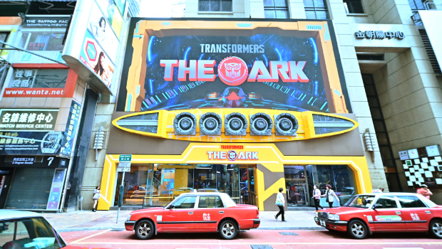变形金刚主题餐厅采用了漫画版博派使用的方舟The Ark为主题,在餐厅外设有巨型立体飞船引擎,以及巨型幕墙,全日播放3D动画,动画使用裸眼技术,不用戴上3D眼镜都可看到3D效果!巨型幕墙是香港首个结合实体建筑之裸眼3D萤幕,在播放动画时同时会出现灯光效果及澎湃音效,模拟飞船在宇宙中飞行的情景!