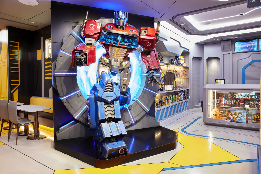 餐厅内模拟太空飞船的船舱环境,连座位、柜台等等都根据飞船内部设计打造,而且在墙身、天花板同样设有多幅3D荧幕,不停播放3D动画,恍如驾驶舱内的控制台,最吸睛当然是位于楼梯旁的巨型荧幕,不时有不同变形金刚的角色正在制造食物!
