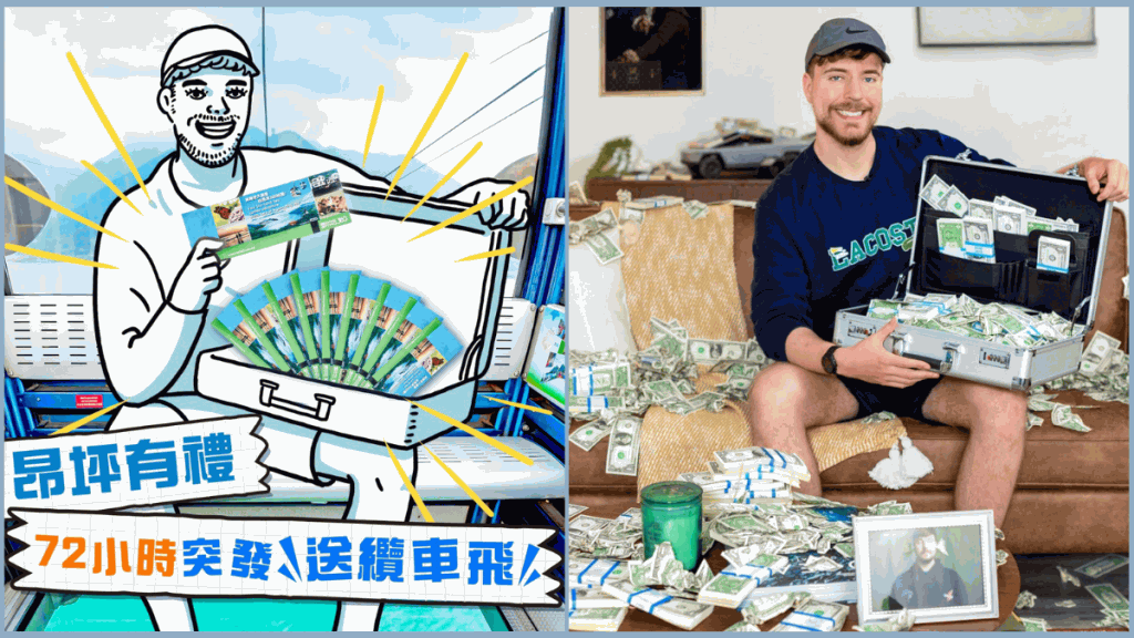 ▲(左) 昂坪360送免费缆车门票; (右) MrBeast生日豪派5万美元。
