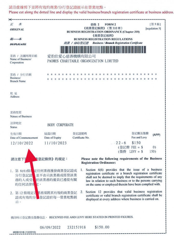 ▲Chris坦言慈善机构去年十月中才正式有商业登记,不存在洗黑钱或欺诈之嫌。