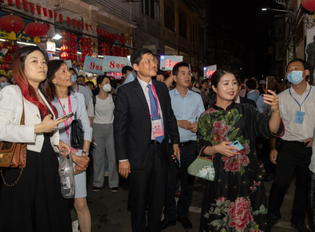 ▲5月16日晚,参加2023华侨华人粤港澳大湾区大会的海外华侨华人代表夜游江门,品味侨都美丽夜景。 南方+记者 肖雄 王俊涛 摄