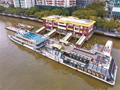 ▲水上巴士 目前,广州水上巴士共有14条航线,西到金沙洲、东到长洲、南到南浦锦绣半岛,天字码头、鱼珠码头、中大码头等传统渡口位列其中。