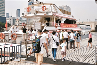 4月29日至5月3日,珠江日夜游客运量达15.5万人次,同比增长11.8倍。5月1日客运量达单日峰值3.8万余人次。