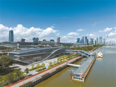 其实,港澳客运码头选址琶洲,也是为了能给广交会参展商带来更多便利。以往每年广交会,外商往往会搭乘飞机到香港国际机场,再通过陆路到广州。琶洲港澳客运码头开通后,客人在香港下机后可以直接坐船来琶洲,甚至行李都可以到了琶洲再拿。从内河航运到“海天联运”, 琶洲港澳客运码头不仅填补了中心城区水上跨境口岸的空白,实现粤港澳大湾区立体交通的无缝衔接。