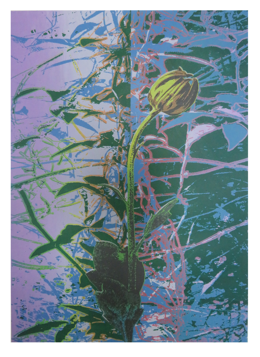 ▲版画|锺大富的孔版画作品《花的祝祷》。