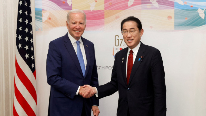 拜登(Joe Biden)在日本时间下午5时许搭机抵达日本广岛,之后随即率领白宫国安顾问沙利文(Jake Sullivan)、美国国务卿布林肯(Antony Blinken)、白宫印太事务协调官坎贝尔(Kurt Campbell)等6位官员,与岸田文雄举行双边会谈。
