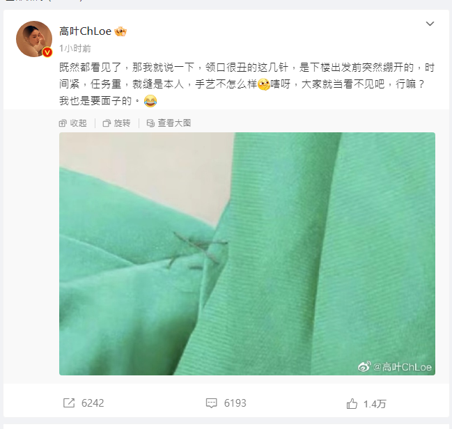 内地女星高叶亦身穿绿色夸张晚装行红地毯,但被网民发现腋下疑似开线,她事后在微博解释完来是亲手缝制:“既然都看见了,那我就说一下,领口很丑的这几针,是下楼出发前突然绷开的,时间紧,任务重,裁缝是本人,手艺不怎么样。大家就当看不见吧,行嘛?我也是要面子的。”另外,走红地毯的还有内地去年金鸡奖影帝朱一龙、BLACKPINK成员Rosé、MARVEL《永恒族》华裔女星陈静(Gemma Chan)。