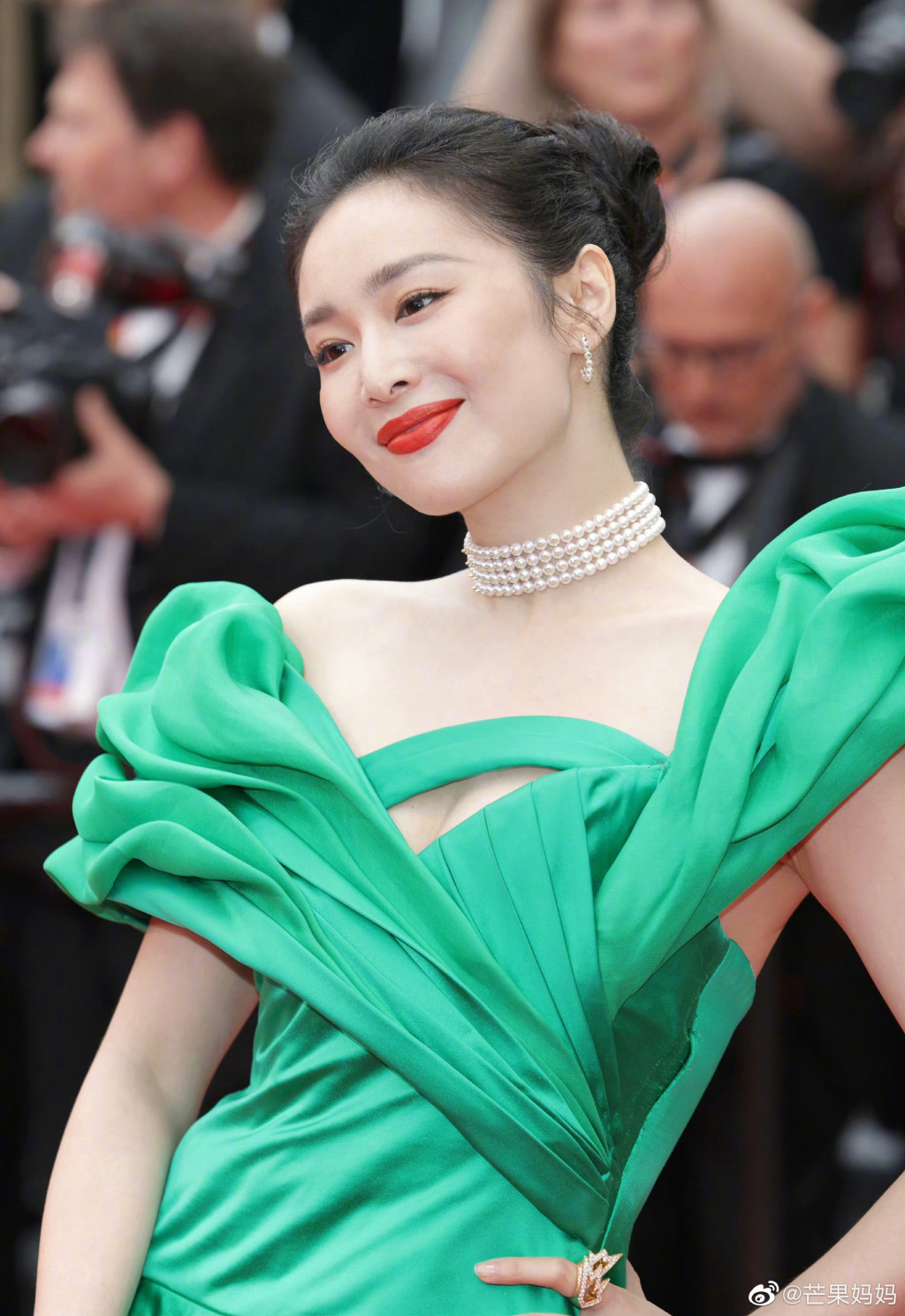 ▲内地女星高叶昨晚亦身穿绿色夸张晚装行红地毯,但被网民发现腋下疑似开线。