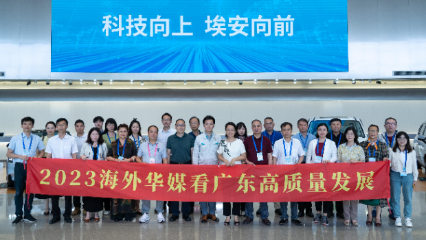 5月20日下午,“2023年海外华媒看广东高质量发展”媒体代表团一行来到广汽埃安新能源汽车股份有限公司。来自五大洲27家华文媒体的30名社长、总编、记者代表走进番禺高质量发展一线采风,以海外华媒视角解读番禺高质量发展故事,感受番禺“智造创新”的强劲动力。