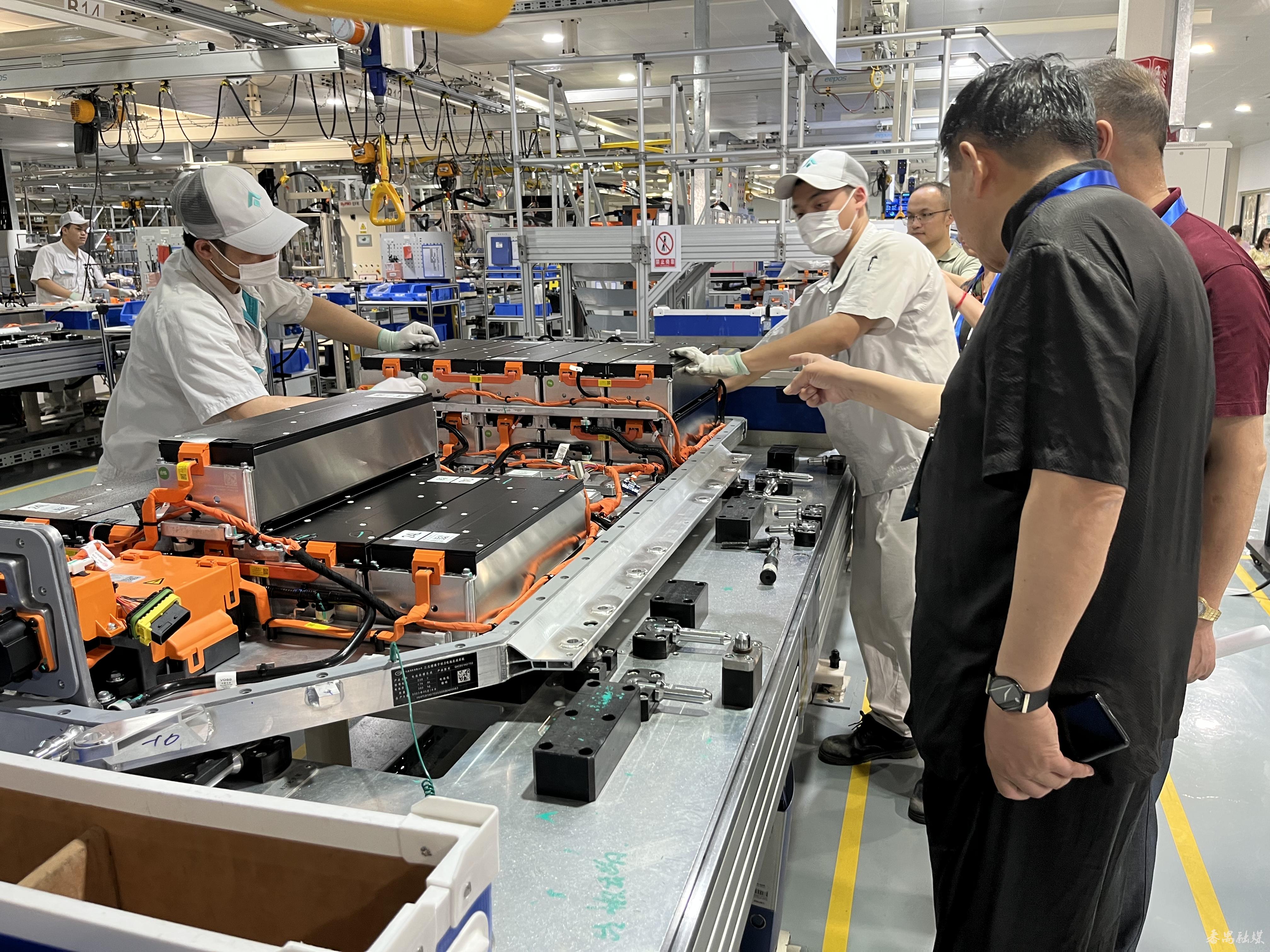 随后,华媒代表团一行走进总装车间和电池生产车间,高端智能化的组装设备深深吸引了代表团成员驻足观看并不时拍摄宣传报道素材,部分代表团成员对总装车间的设备和组装流程等方面向车间负责人提出了自己的疑问,并一一得到解答。“目前全球车企都在抢抓新能源汽车赛道,看了埃安的生产线,我想这家公司已经走在了这条赛道的前列。”华媒代表团成员告诉记者,中国新能源汽车在全球市场的“变道超车”为中国品牌进军国际市场创造了无限契机。在智能生态工厂参观完毕后,华媒代表团针对国内新能源汽车发展以及广汽埃安未来竞争形势等方面进行了集体采访,现场气氛热烈。