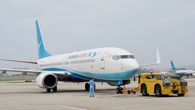 ▲5月22日,厦门航空MF883号航班从福州长乐国际机场起飞前往台北松山机场。中新社