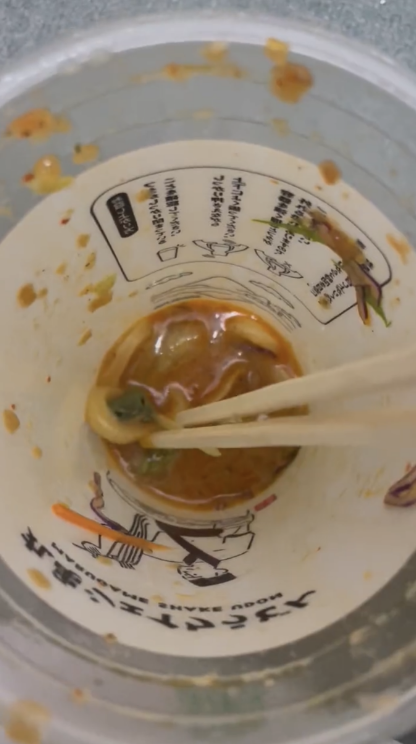 ▲22日在日本网络上热传的“从乌冬面里吃出活青蛙”视频截图,图自社交媒体。