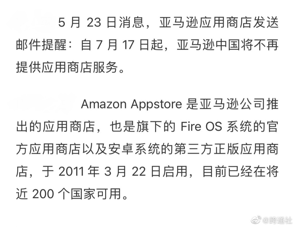 据外媒报道,亚马逊中国官网“Amazon.cn”周二突向平台用户发布邮件公告:“尊敬的亚马逊应用商店客户,您好!我们留意到您之前使用过/或还在使用亚马逊应用商店(Amazon Appstore),我们发送此邮件通知您,自7月17日起,亚马逊中国将不再提供应用商店服务,如果您有任何疑问,请联系亚马逊客户服务。再次感谢您对亚马逊的支持与厚爱”。