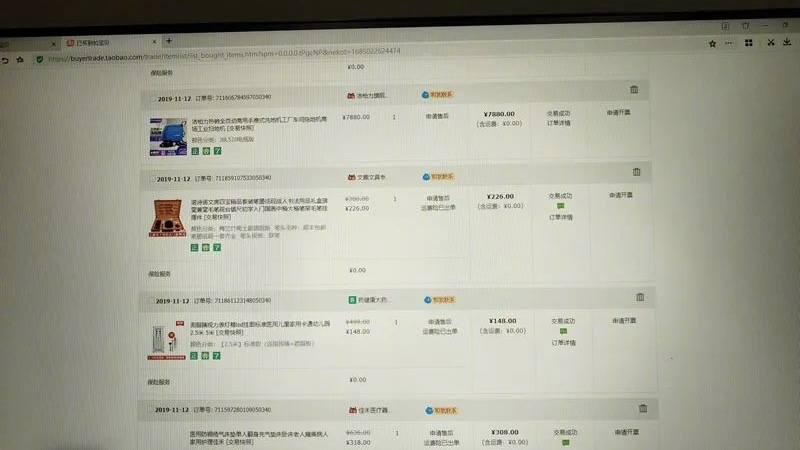 ▲林某生前所用购买医院物资的淘宝购物记录。