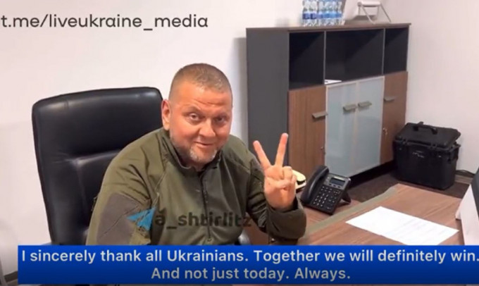 上周五,乌克兰武装部队高级参谋斯特凡上校(Anatoliy Shtefan)在个人社交媒体上,分享了扎卢兹尼在办公室裡的日常片段。斯特凡对着镜头说:“从五月起,我们都欣赏着俄罗斯编造各种科幻故事与所谓专家们创作的各种阴谋论。”当镜头拍到扎卢兹尼时,他说:“非常感谢乌克兰各界的支持,我们将共同取得胜利。”