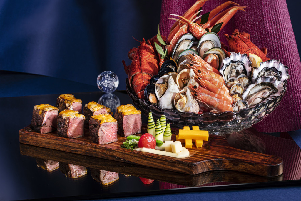 想吃得丰富,父亲节自助晚餐是不二之选,美食琳琅满目。先尝肥美冰镇海鲜,包括即开生蚝、长脚蟹、蓝青口、熟海虾及翡翠螺等,款式多样。大厨更特别炮制滋味父亲节菜式,例如辣酒煮鲍鱼鸡煲,鸡件以辣椒、花椒和蒜爆香,再加入酒提香,配上汤焖煮的鲍鱼,鸡肉嫩滑,鲍鱼软腍入味,惹味又酒香四溢。特别丰腴的芝士焗M5和牛,牛肉油花均匀,煎至外脆内嫩,以盐及黑椒调味,再加莫萨里拉芝士焗至焦香,牛肉香浓软滑。