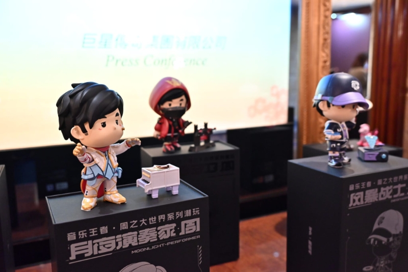 ▲巨星传奇招股发布会,展出周杰伦IP的产品。