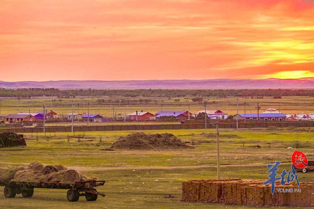 ▲呼伦贝尔市黑山头镇,夕阳西下,落日余晖与秀美村庄相映成趣,构成一幅美丽的乡村画卷。