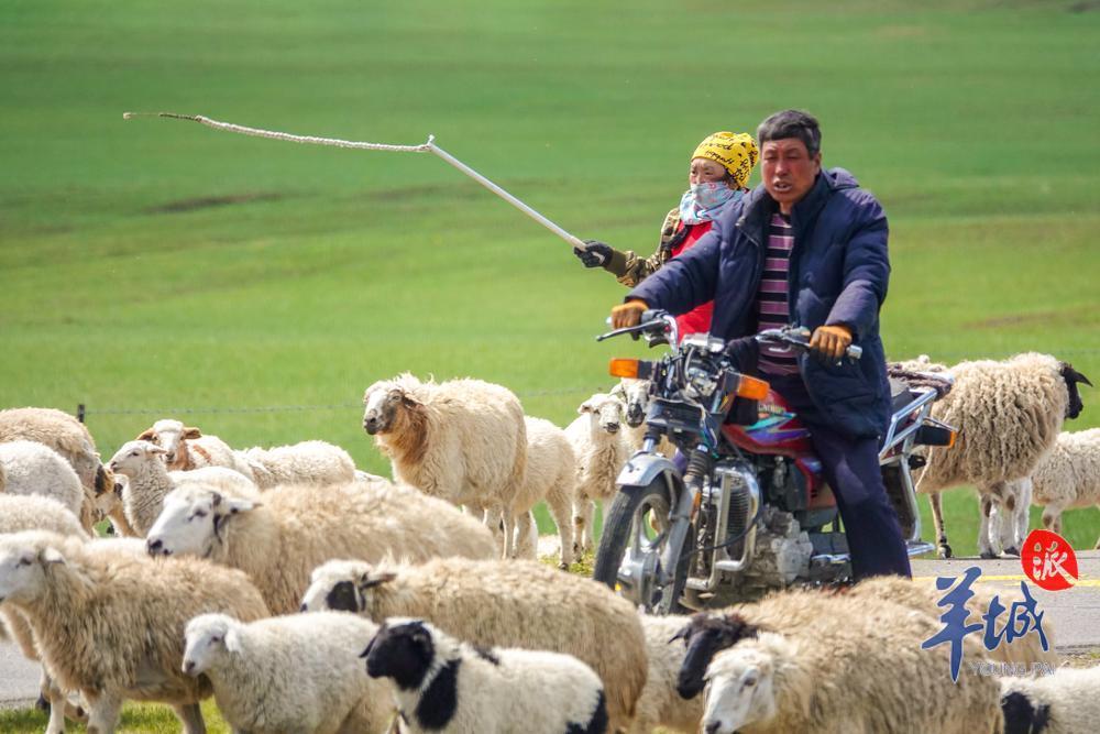 ▲内蒙古呼伦贝尔市陈巴尔虎草原上,牧民骑车放牧。