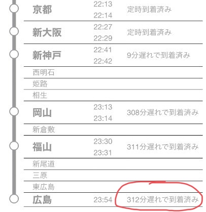 这起意外造成事故列车及附近另一列从东京站开往广岛站的列车被迫在轨道上临时停车,总计造成约400名乘客在车内等待约5小时。
