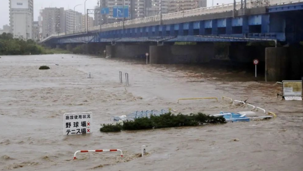 ▲2019年10月12日,日本多摩川水位大幅上涨,河水浑浊。新华社/共同社