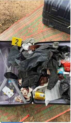 ▲其中一个行李箱藏尸,另一个放有衣物及部分带血渍物品。