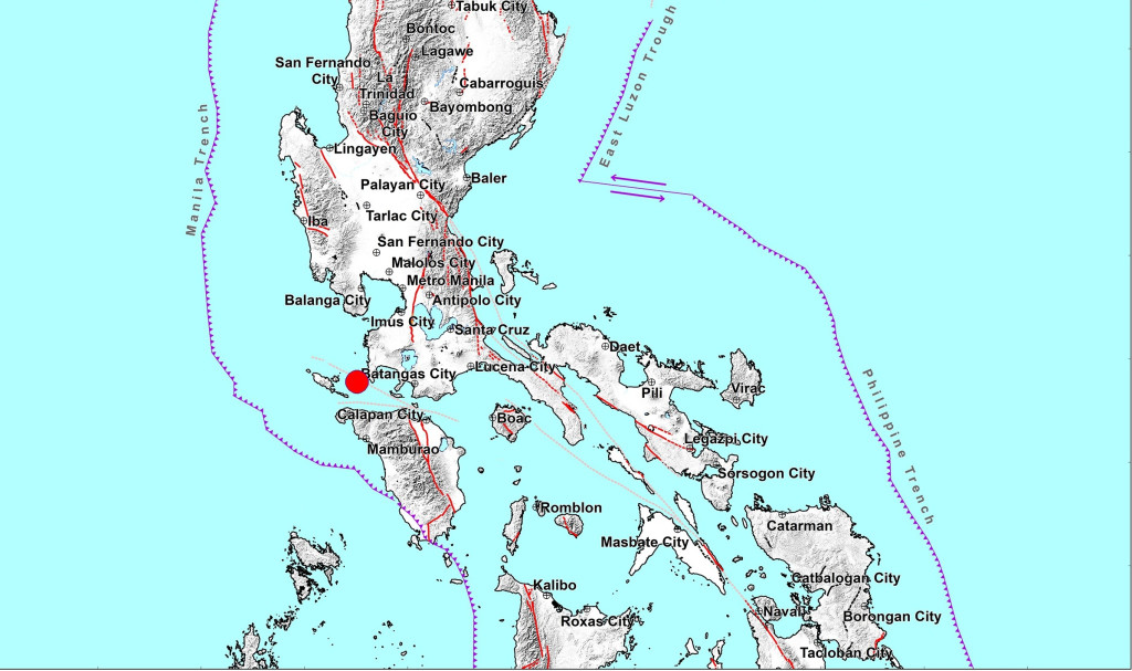 ▲地震发生在马尼拉南方八打雁省外海。