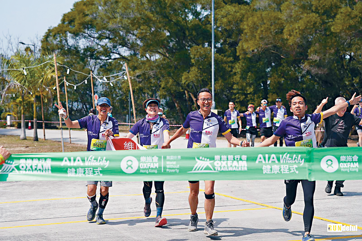 ▲陈羽微与同事刚完成‘乐施毅行者’远足筹款活动,需于48小时内横越100公里,尽显团队精神。
