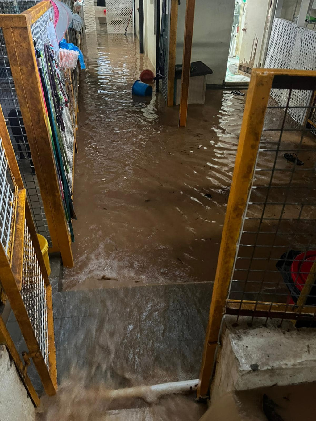 ▲有位于元朗的动物收容所指被大量黄泥水倒灌,出现水浸情况。
