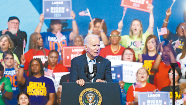 ▲总统拜登在费城举行造势大会,环绕经济议题大谈自己的政绩,强调其政策创造就业机会的同时,也纾缓了中产阶层的压力。 美联社