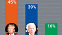 现在特朗普领先德桑蒂斯29个百分点,优势比4月份有所增加,当时46%共和党选民以特朗普为第一选择,31%的人支持德桑蒂斯,两人相差15个百分点。如果共和党初选是特朗普与德桑蒂斯对决的话,特朗普的支持度更达60%,比德桑蒂斯的36%多出24个百分点,