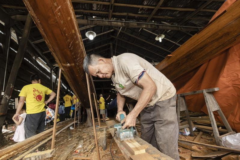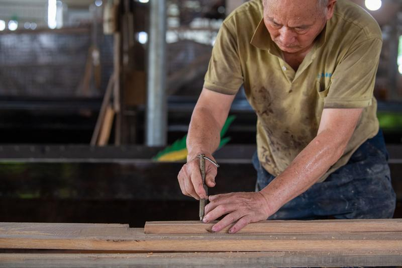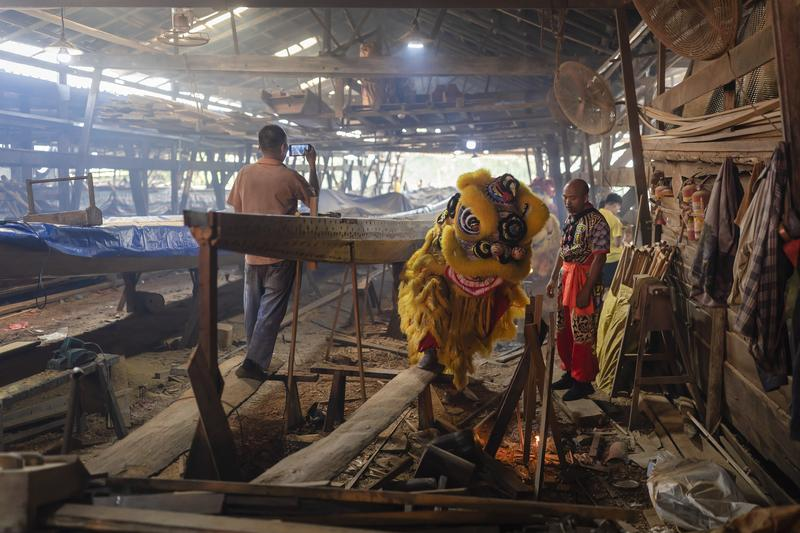 上漖村何以成为“冠军龙”的诞生地?秘诀在于匠心传承。古老船厂里没有太多现代工具,工作环境也不舒适,工匠们熟练掌握祖辈流传下来的独门手艺,以更坚固、更快速为目标,一锤一刀,专心造好一条龙舟。