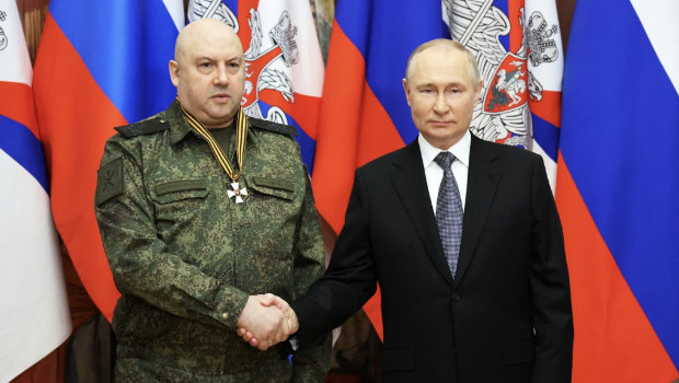 ▲苏洛维金(Sergei Surovikin,左) 曾获普京授予三级圣乔治勋章。圣乔治勋章是俄罗斯联邦的最高军事奖章。 路透社