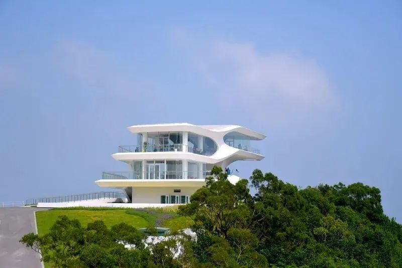 公园拥有4000平方米的开放草地,以及800平方米的森林服务站,白色的建筑昂然竖立于山顶,有种天空之城的仙境感觉,简约的设计非常适合打卡拍照。