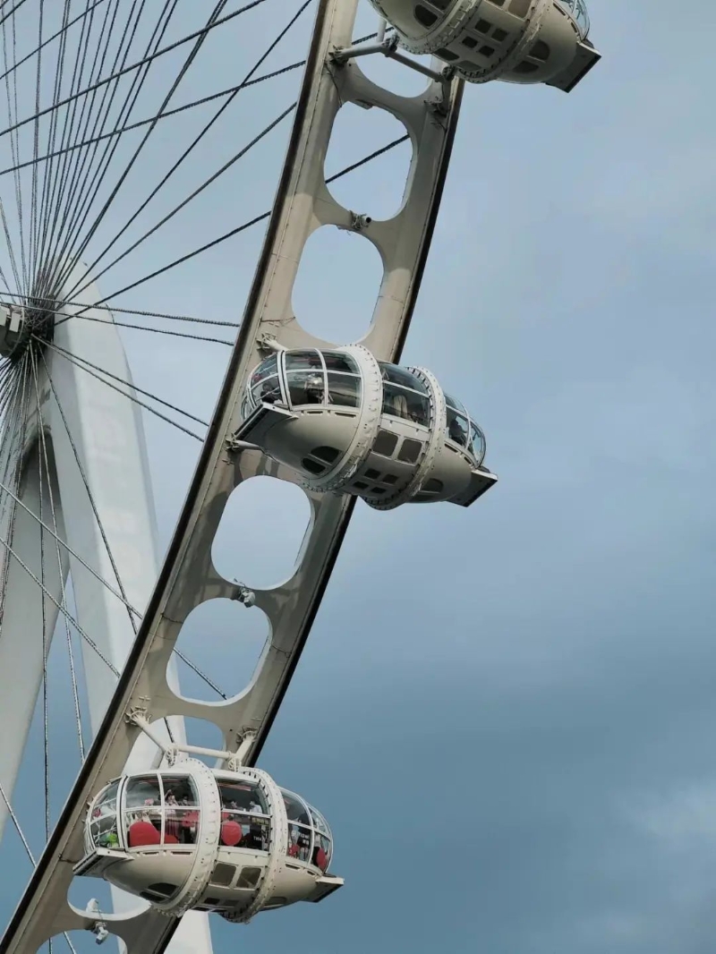 其中,“湾区之光”摩天轮足足有128米高,绕一圈都需要50分钟,是深圳最高的摩天轮。摩天轮一共有28个轿厢,每个可容纳25人。采用全天景轿厢360°的通透玻璃,升上半空即可欣赏城市美景。