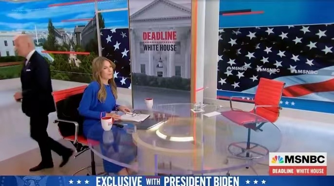报道称,在29日的节目上,MSNBC主持人妮可勒·华莱士对拜登进行了现场采访,他们讨论的内容并不多,拜登花很多时间解释他当天早些时候发表的言论,内容为批评偏向保守派的美国最高法院不“正常”。而在约20分钟的讨论后,拜登从椅子上站起来,从华莱士身后走过,“潇洒地离开了直播现场”,而华莱士则在向观众介绍对采访的分析。