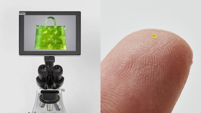这款微型手袋利用双光子聚合的3D影印技术创造,买家要用显微镜及内置的数码展示功能才能欣赏。