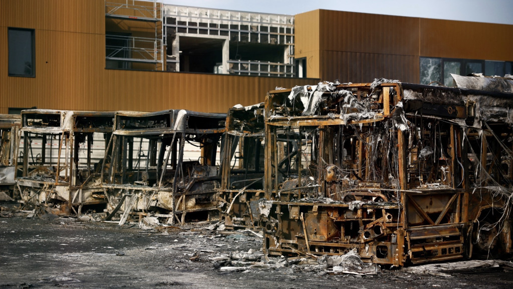 巴黎郊区奥贝维利耶(Aubervilliers)一个车站成为袭击目标,12辆巴士受损。该市交通公司RATP予以“最强烈的谴责”,表示巴士和电车服务将受到严重干扰。
