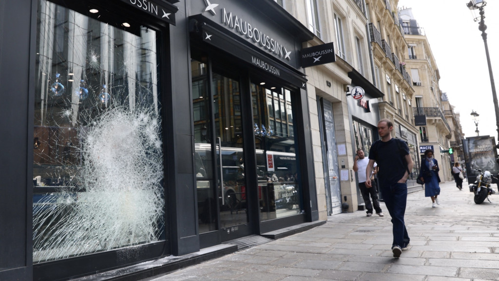 ▲巴黎里沃利路的Mauboussin橱窗被砸。 路透社
