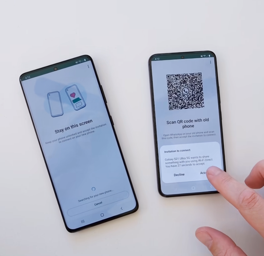 日后转移WhatsApp聊天对话记录将会变得更加方便,用户只需要在旧设备WhatsApp上开启QR Code,用新手机描瞄即可开始转移。 旧手机的数据将会直接传输至新手机,用户不再需要将对话内容上载到云端,又再下载到新装置。