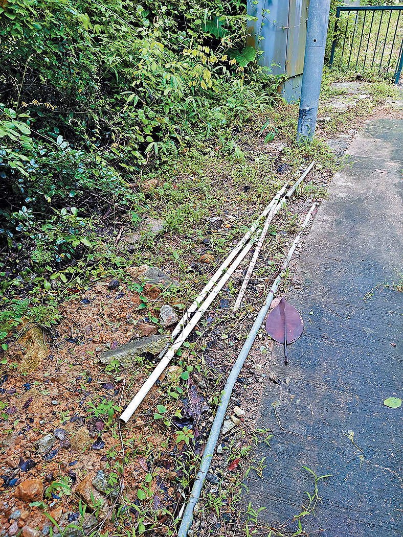 ▲沙田黄竹洋村今年初开展工程不久便停工,路上可见外露的管线,部分更已断开。
