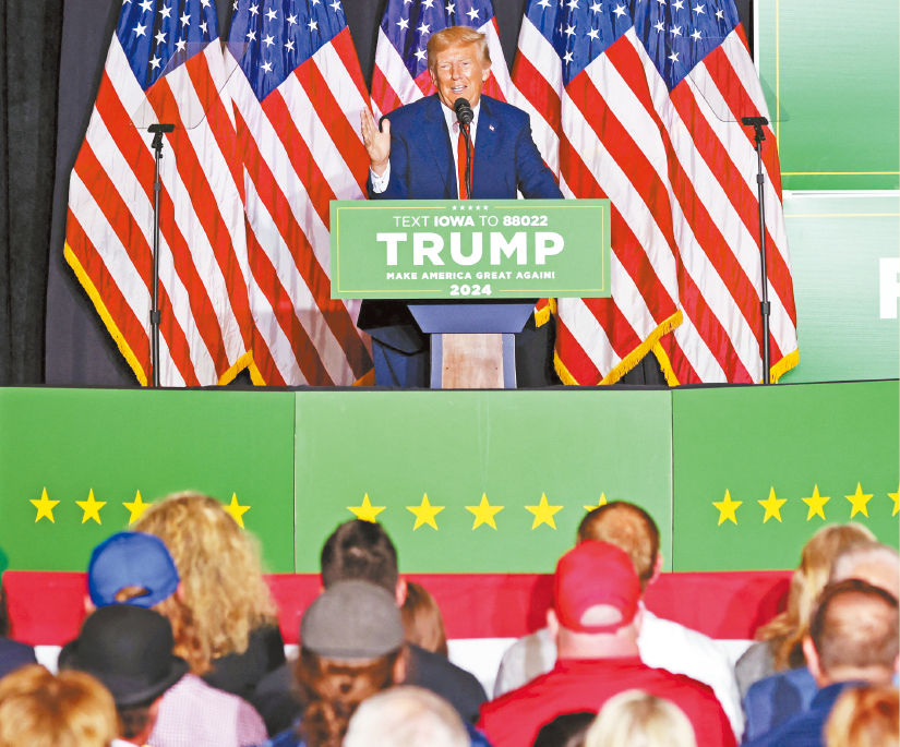 ▲前总统特朗普在爱州举行近4个月来最大规模的共和党总统提名竞选活动,攻击对手佛州州长德桑蒂斯,曾投票反对联邦授权爱州盛产的玉米乙醇,立场多年未改。路透社