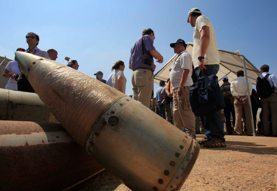 集束弹药爆炸时,会在数个足球场大小的区域内散布数十颗小炸弹,其中很多小炸弹不会爆炸,而是埋在地下。