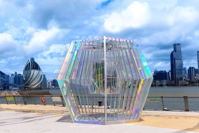 设置于炮台山“东岸公园主题区”、逾4米高的标志性六角无限镜室艺术装置,以无限反射镜制作而成,配合不同的灯光效果,让人置身其中,沉浸于多角度反射的维港景观之中,在新维度中感受无限延伸的醉人美景;夜间更会配合光影漫射的效果,令主题区更添文艺气息。装置中的六角无限镜室,令游人影像于棱镜上有序地层层反射,营造出沉浸式艺术体验,打卡度满分。场内更设有特色六角滤色镜和六角LED灯,让大家于不同色调下欣赏维港海滨美态。