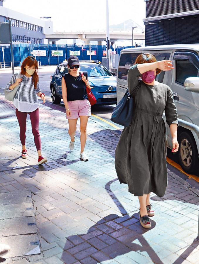 ▲大姐李秋林以手遮面,李思林(左)则跟友人紧随其后。