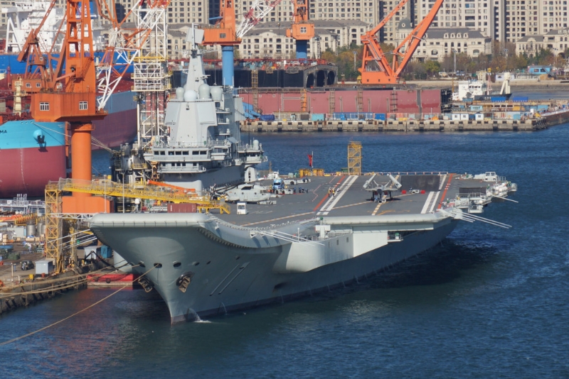 ▲在大连造船厂的山东号航母。