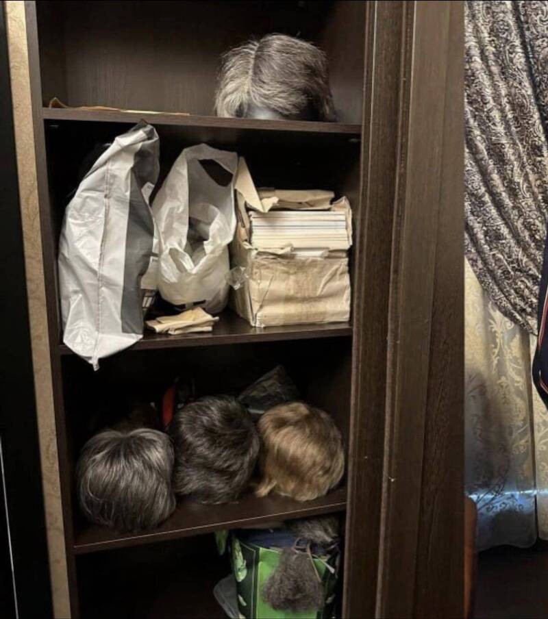 ▲普里戈任藏有多个假发。(图:twitter)