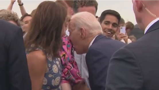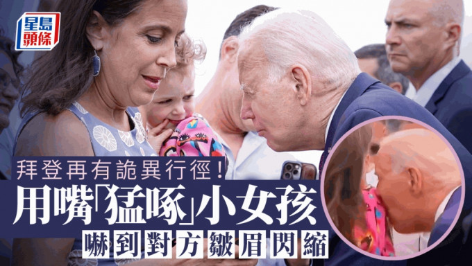 临行前,他向到机场送机的当地美国大使馆职员和家属道别,走到一对母女面前时,他停下脚步,冷不防把脸凑近依偎在妈妈怀中的小女孩,朝她的肩膀“啄”了好几下,还扮起鬼脸,最后更企图亲吻女孩脸颊。整个过程中,小女孩蹙紧眉头,表情相当不悦,不断扭动身体试着闪避,但拜登似乎不以为意,一直靠近女孩,这一幕被在旁民众拍了下来。
