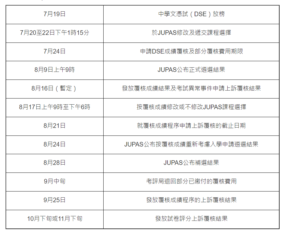 DSE放榜︱重要日子时间表