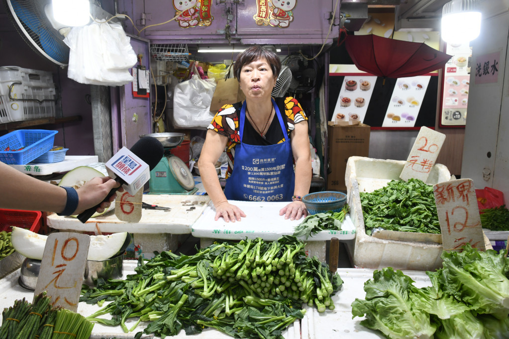 ▲菜档档主李小姐表示今早受台风影响,生意额大跌6成。